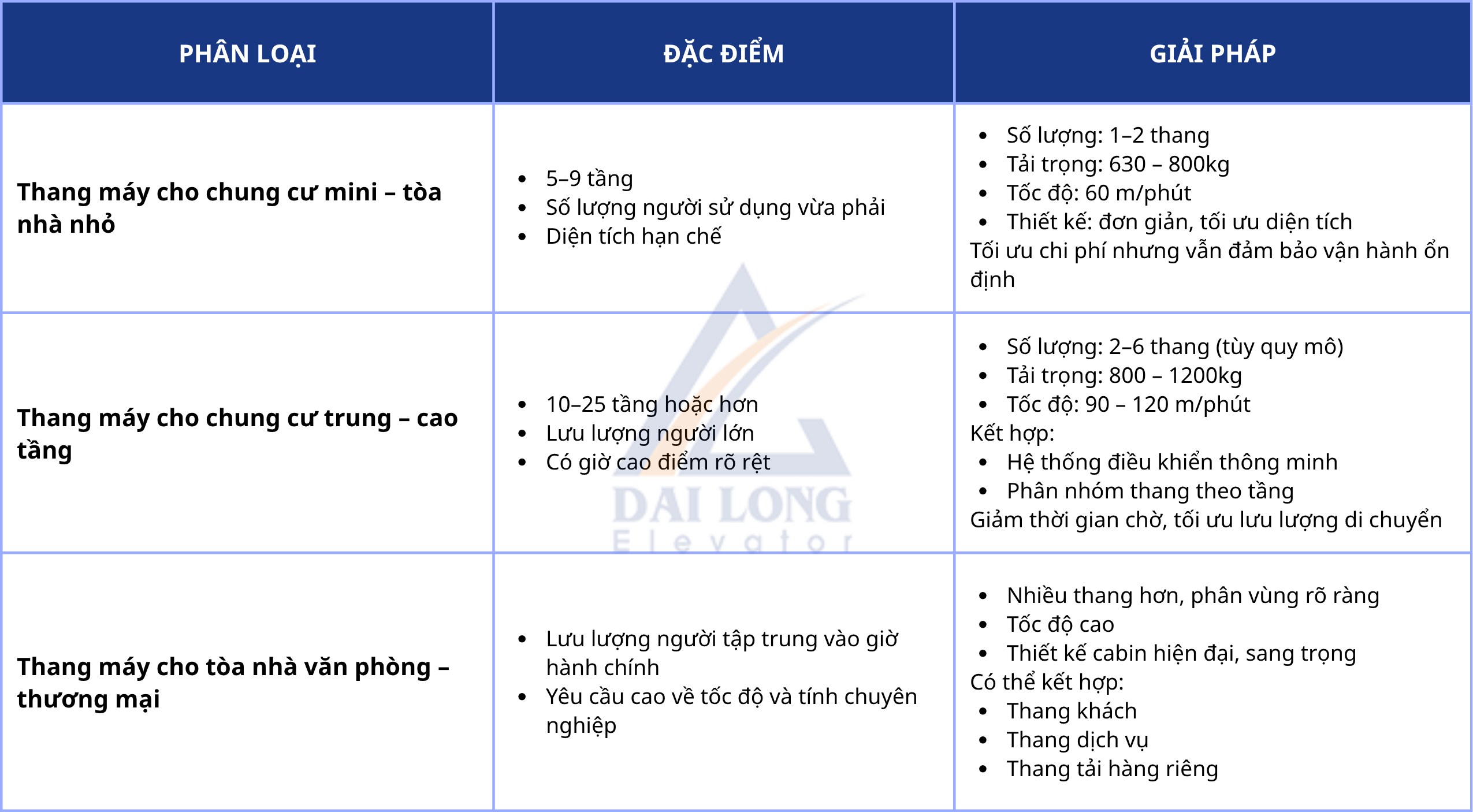 Phân loại giải pháp thang máy chung cư – toà nhà theo quy mô công trình